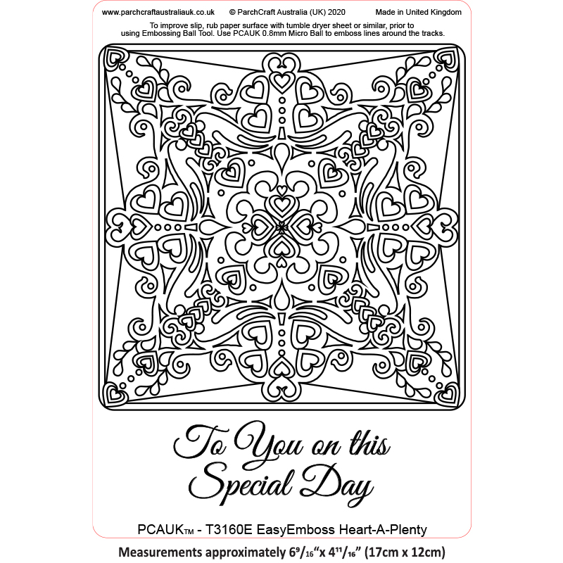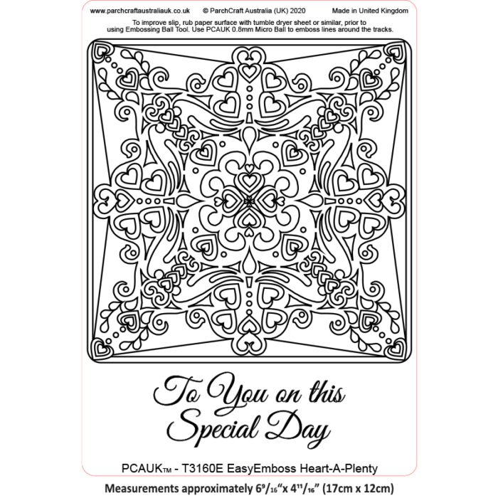 This template can be left embossed or can be coloured with various mediums of choice. To embossed use the PCA E3012 Micro Ball embossing tool which fits perfectly in the template tracks.
